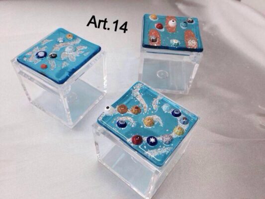 Specifichiamo inoltre che i riporti sulle bomboniere sono di Vetro di Murano;